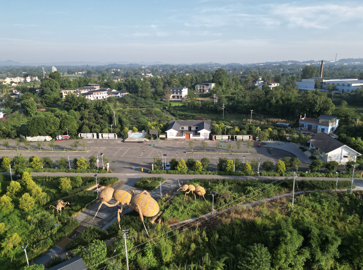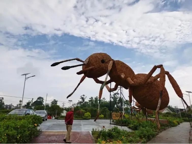 五彩农庄是以农业观光和生态景观为一体打造的休闲开放空间,用五彩跑道连接多肉和花卉种植基地。农庄内打造了三只巨型蚂蚁,由稻草编织而成,最高可达16.5米,在这里大可放开脚步、抛却烦心,用心感受稻田的清香和乡村的闲适。在欣赏五彩农庄的同时,体验稻草化腐朽为神奇的魅力。