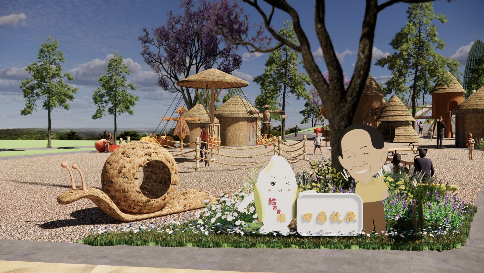 稻小米乐园位于连接路旁,临近五彩田园主景观,占地面积5亩。乐园以“米宝溯源记”为主题,以“万物之源”“田园牧歌”“金谷盈仓”“五谷丰登”四大故事主线串联乐园主题,打造“水上乐园”、“田野稻草”、“秋千粮仓”、“稻梦空间”等游乐项目共计20个。