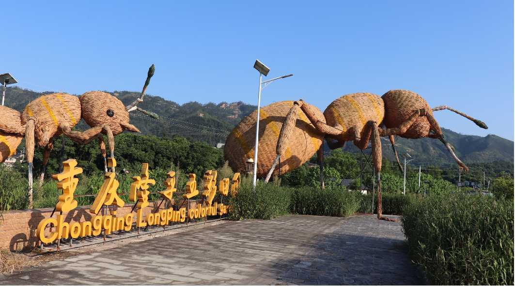 五彩农庄是以农业观光和生态景观为一体打造的休闲开放空间,用五彩跑道连接多肉和花卉种植基地。农庄内打造了三只巨型蚂蚁,由稻草编织而成,最高可达16.5米,在这里大可放开脚步、抛却烦心,用心感受稻田的清香和乡村的闲适。在欣赏五彩农庄的同时,体验稻草化腐朽为神奇的魅力。