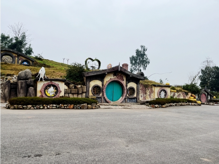 新西兰玛塔霍比屯重庆分屯就在大足拾万隆平五彩田园!仿照史诗级电影《指环王》拍摄地原尺寸比例建设的微缩景观,这里袋底洞、磨坊、宴会书、绿巨龙客栈等指环王和霍比特人魔幻电影中出现的场景应有尽有,是五彩田园亲子打卡拍照的主要场所,也是指环王迷们不可错过的主题景观。翠绿的山坡上点缀着各种打卡装置,霍比特人居住的半圆形地洞木屋散落其间,连同石头拱桥、山间小道、篱笆和花园,构成了一幅带着奇幻味道的惬意田园画卷。